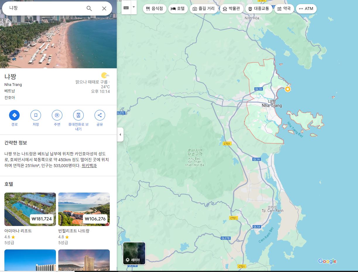구글맵 사이트(https://www.google.co.kr/maps/)나 어플로 들어갑니다. 검색창에 나트랑을 검색합니다.