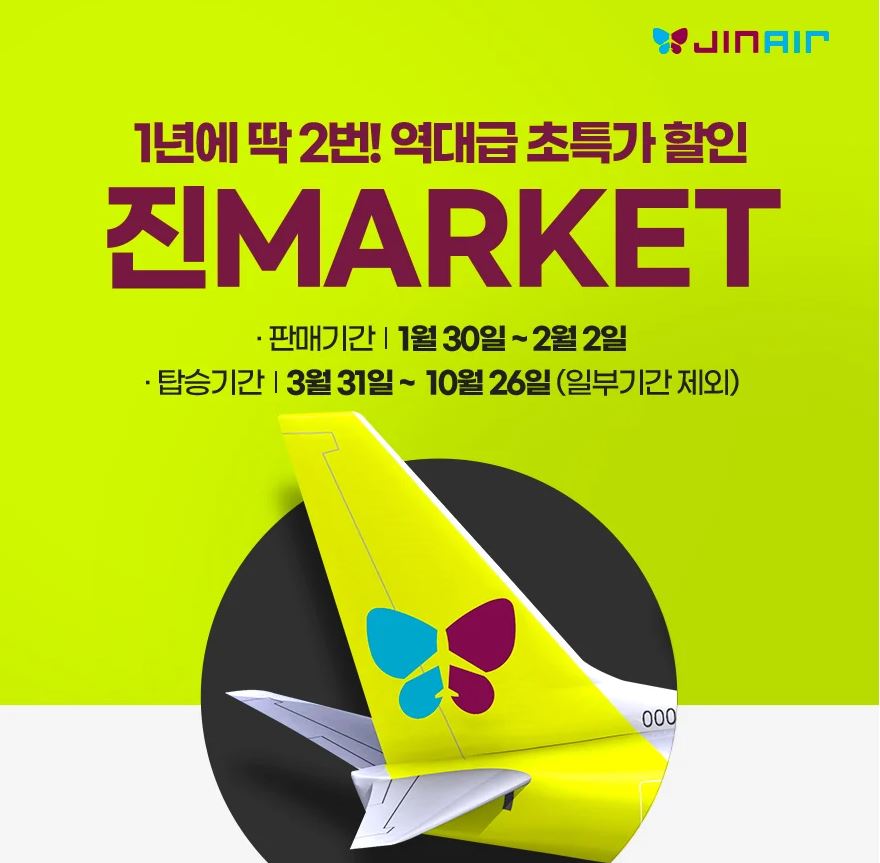 각 항공사마다 프로모션기간에 따라 항공권 가격이 많이 달라지는데요. 이 방법은 항공사마다 들어가서 빠르게 비교할 수 없다는 단점이 있지만, 항공사에서 직접 프로모션으로 구매하는 방법이므로 날짜와 시간이 맞는다면 가장 저렴하게 항공권을 구매하실 수 있는 방법입니다. 현제 2024년 1월 30일 ~2월 2일까지 진에어 항공사에서 초특가 프로모션을 진행하고 있는데요. 공식 진에어항공사 사이트에 들어가시면 확인 및 초특가 항공권구매가 가능합니다.